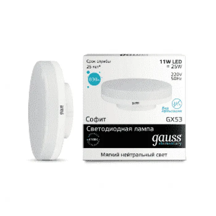 Лампа Gauss LED Elementary, цоколь GX53, мощность 11W, цветовая температура 4100K