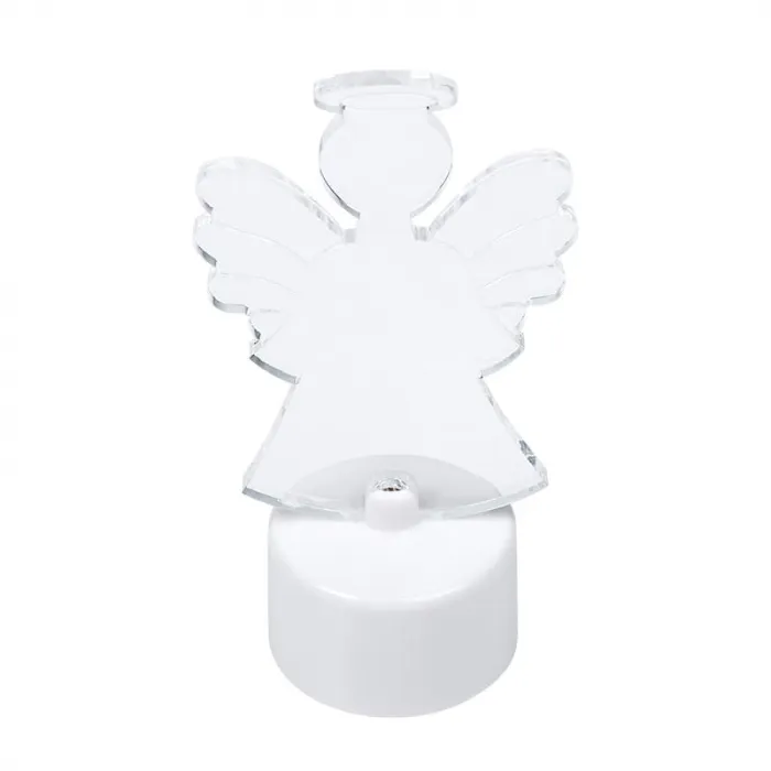 Фигура представляет собой контур ангела, выполненного из гибкого светодиодного провода. Она имеет компактные размеры и устанавливается на специальной подставке, что делает ее удобной в использовании. Фигура работает от сети через адаптер, который входит в комплект поставки.