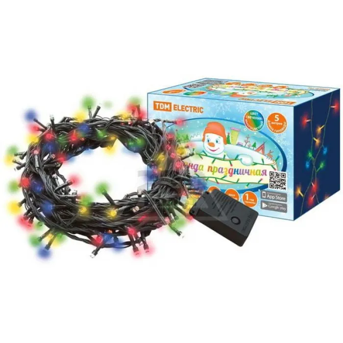 НГ Гирлянда светодиодная СГ50MЗ5, многоцвет., зеленый шнур, 5м, 8 режимов, 250 В, TDM, Нижний Новгород