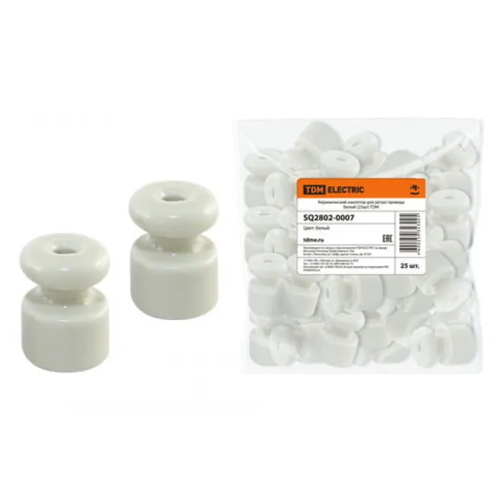 Изолятор керамический для ретро провода белый (25шт) TDM SQ2802-0007, Нижний Новгород