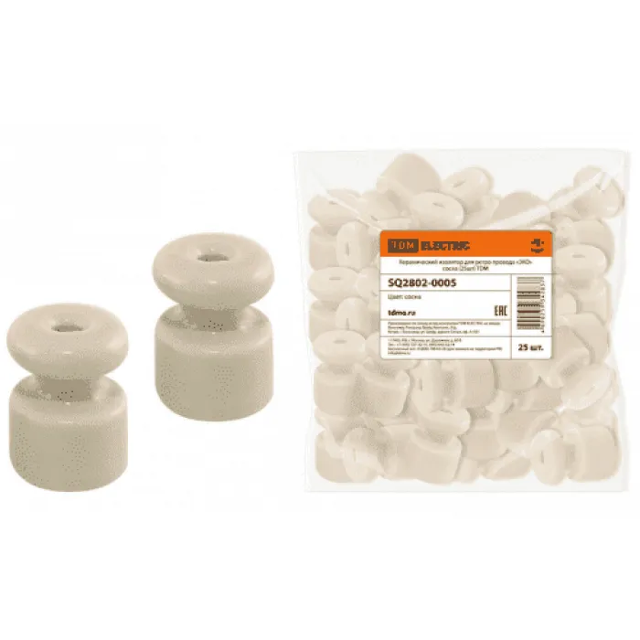Керамический изолятор для ретро провода «ЭКО» сосна (25шт) TDM, Нижний Новгород
