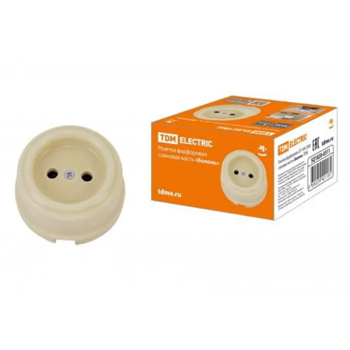 Розетка фарфоровая 2П 10А 250В сл. кость «Болонь» TDM, Нижний Новгород