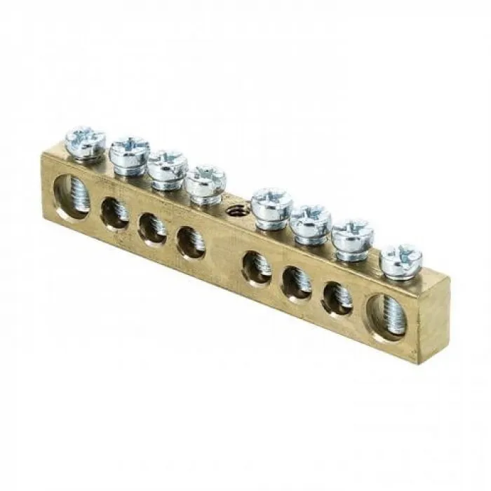 Шина PEN "ноль-земля" (6x9мм) 8 отверстий латунь крепеж по центру EKF PROxima, Нижний Новгород