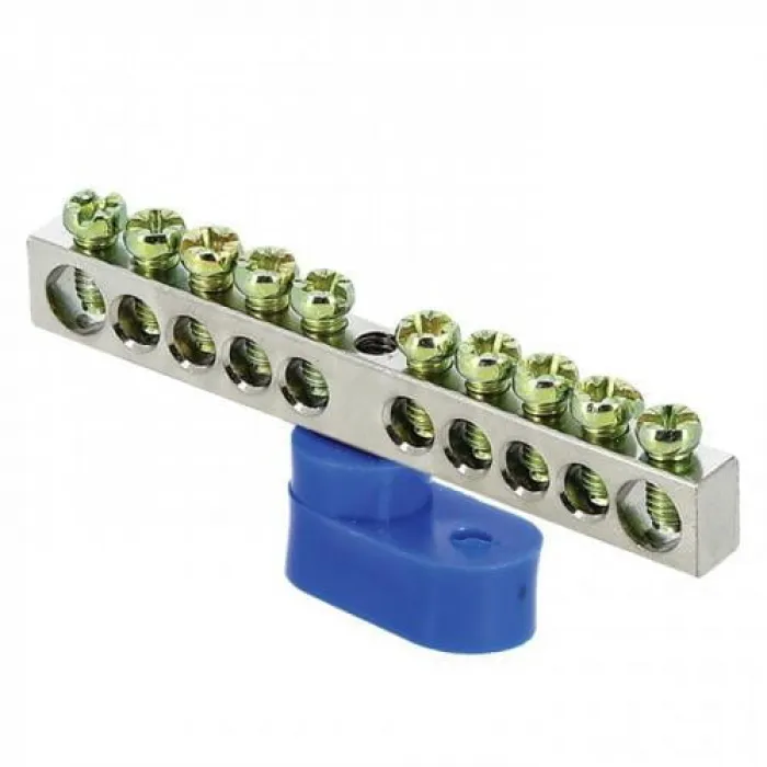Шина "0" N (6x9мм) 10 отв. цинк синий угловой изолятор EKF PROxima, Нижний Новгород