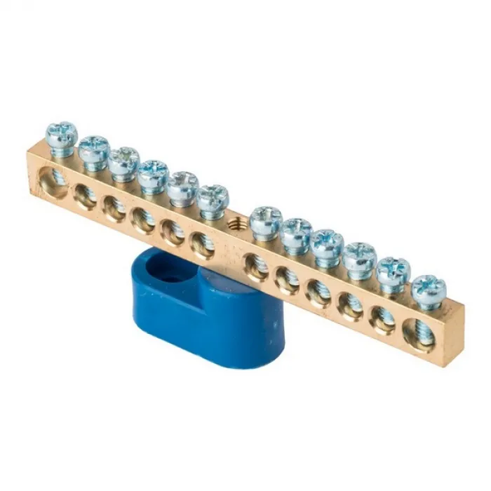 Шина "0" N (6х9мм) 12 отверстий латунь синий угловой изолятор EKF PROxima, Нижний Новгород