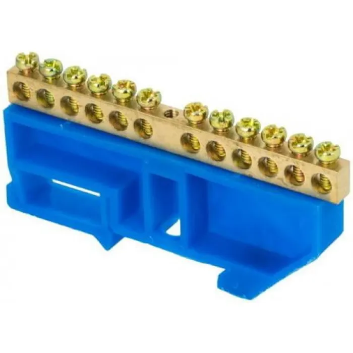 Нулевые шины на двух угловых изоляторах Navigator серии NBB. Нулевые шины предназначены для электрического и механического соединения нулевых рабочих (N) и нулевых защитных (PE) проводников, и представляют из себя целиковую латунную планку с отверстиями и винтовыми прижимами. Как правило, нулевые шины крепятся в распаячных коробках или распределительных щитках.