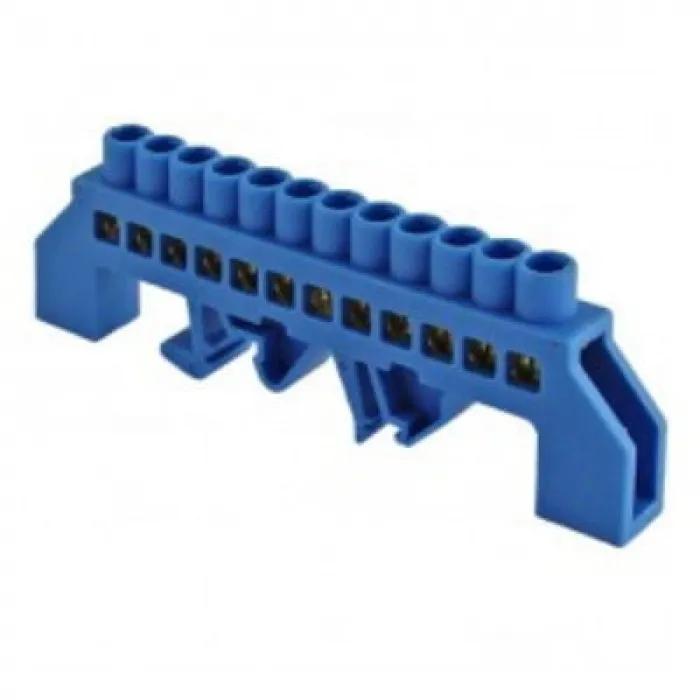 Шина "0" N (8х12мм) 12 отверстий латунь синий нейлоновый корпус комбинированный EKF PROxima, Нижний Новгород