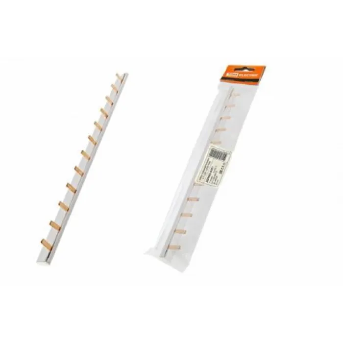 Шины соединительные PIN («гребенка») производятся на номинальные токи 63 и 100 А, на одно-, двух-, трех- и четырехфазную нагрузку.Шины соединительные представляют собой пластины выполненные из меди (шины на 100А – из луженой меди), закрепленные в корпусе из диэлектрического материала, не поддерживающего горения и выпускаются стандартной длиной 1 метр (54 модуля по 18 мм или 36-37 модулей по 27мм).