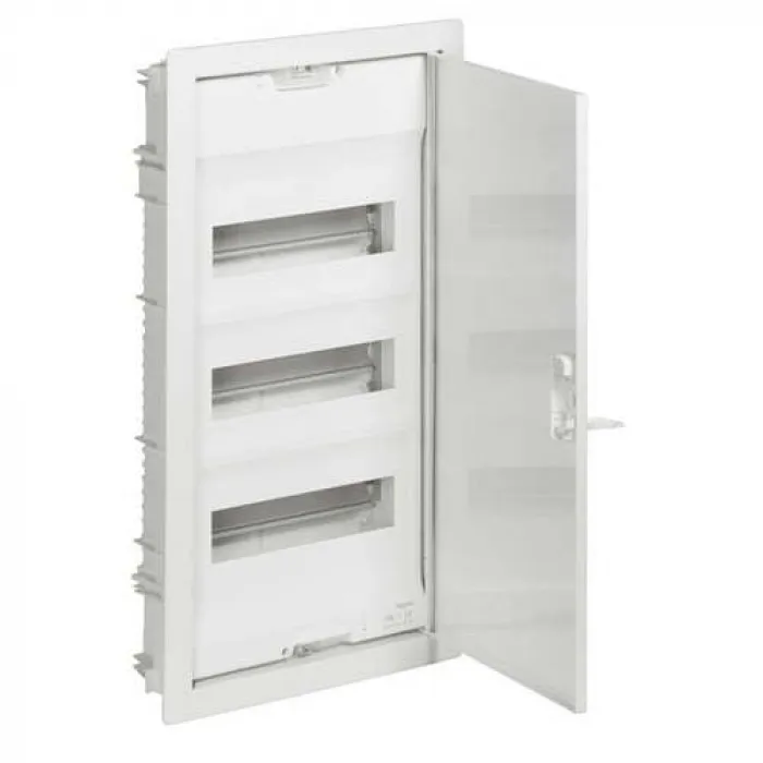 Щит Legrand Nedbox предназначен для установки в нишу и обеспечивает защиту электрических сетей и оборудования. Вмещает до 36 модулей (3 ряда по 12 модулей) с шинами N+PE. Металлическая дверь обеспечивает надежную защиту от внешних воздействий. Этот щит идеально подходит для использования в жилых домах, коммерческих помещениях и промышленных объектах, где требуется надежное и безопасное электроснабжение.