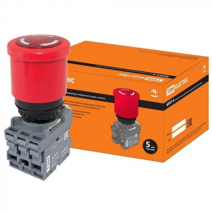 Кнопка грибовидная, возврат поворотом MPET4-10R в сборе d40мм 1з+1р красная TDM, Нижний Новгород