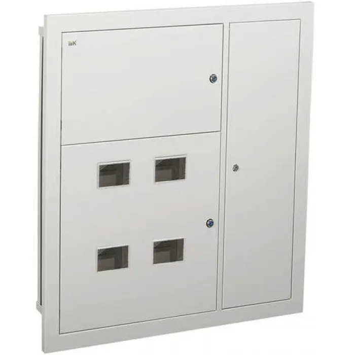 Используется для сборки этажного распределительного щита на 4 квартиры, предназначенного для приема и распределения электроэнергии в жилых и общественных зданиях, а также для защиты отходящих линий при перегрузках и коротких замыканиях. Сварной металлический корпус состоит из трех отсеков: вводно-учетного, распределительного, отсека слаботочного оборудования. В вводно-учетном и распределительном отсеках размещены DIN-рейки для крепления счетчиков (по количеству квартир). В распределительном отсе