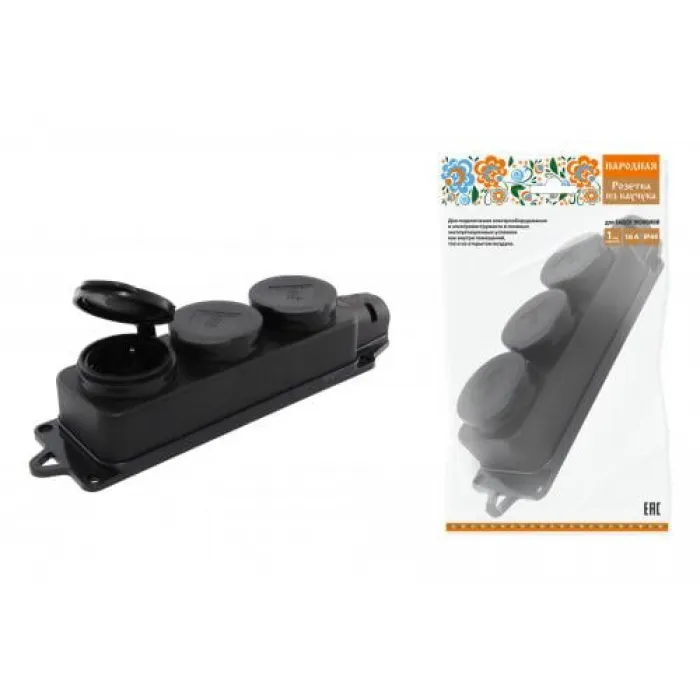 Розетка Каучук 3гн. 2Р+РЕ с заглушками 16А 250В IP44 наружной установки TDM Народная SQ0612-0038, Нижний Новгород