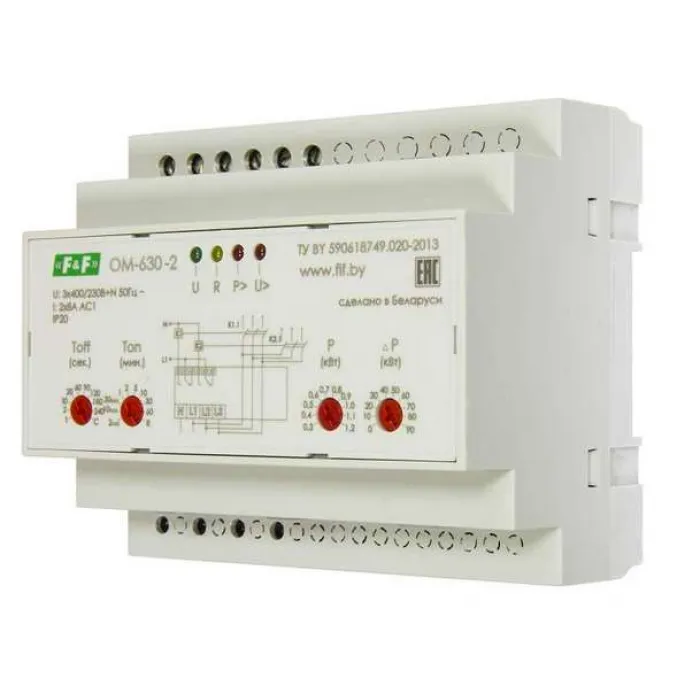 Ограничитель мощности ОМ-630-2 работа с приоритетной и неприоритетной нагрузками встроен. счетчик числа отключений монтаж на DIN-рейке 35мм 3х400/230+N 2х8А 2х1Р F&F EA03.001.009, Нижний Новгород