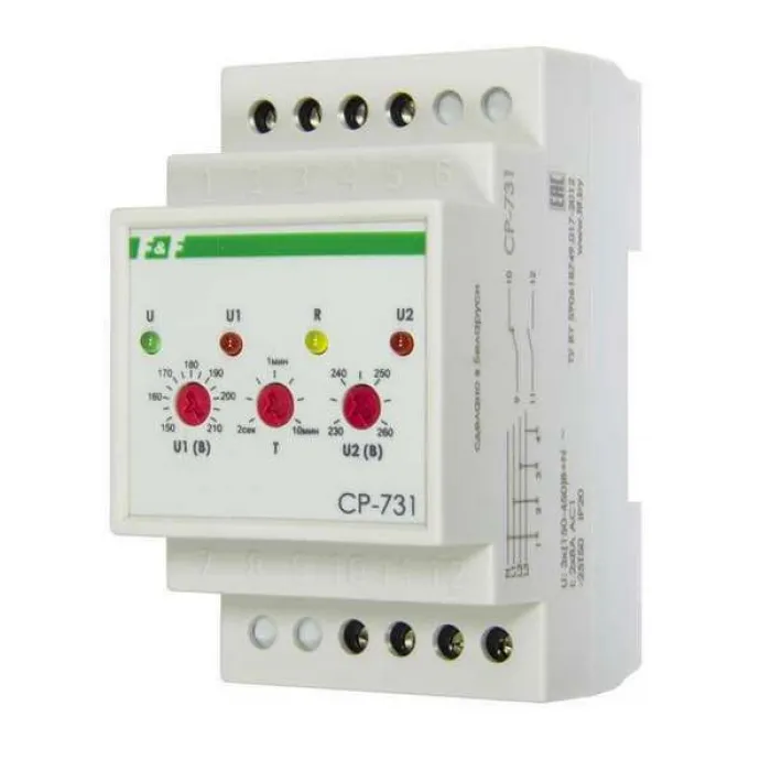 Реле напряжения CP-731 (трехфазный. микропроцессорный. контроль верхнего и нижнего значений напряжения. контроль ассиметрии. чередования фаз. монтаж на DIN-рейке 35мм 3х400/230+N 2х8А 1Z 1R IP20) F&F EA04.009.005, Нижний Новгород