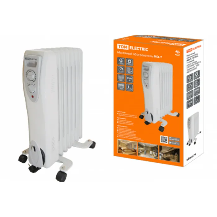 Масляный обогреватель МО-7, 1500 Вт, 7 секций, регул. мощн. (550/950/1500 Вт), термостат, TDM, Нижний Новгород