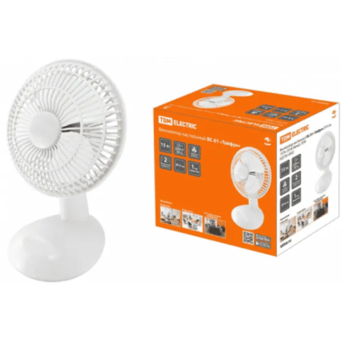 В нашем магазине Главэлектрика в Нижнем Новгороде, вы можете приобрести с доставкой по Нижнему Новгороду товар Вентилятор настольный ВС-01 "Тайфун" D15 см, 15 Вт, 230 В, белый, TDM.