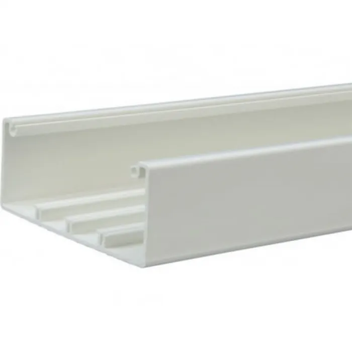 Данный кабель-канал выпускается без крышки, что облегчает процесс укладки и замены кабелей. Он имеет классический белый цвет, благодаря чему он будет незаметен на стенах и потолках и не нарушит общий интерьер помещения.