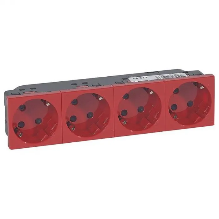Розетка четырехместная Legrand MOSAIC, скрытый монтаж, с заземлением, красный, 077283, Нижний Новгород