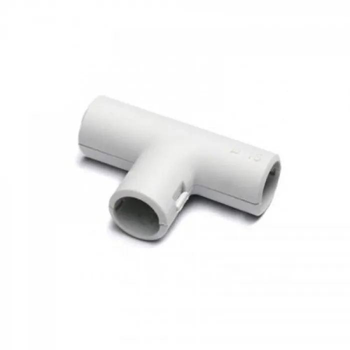 Тройник открывающийся TIG предназначен для Т-образного соединения трёх гладких жестких труб. Состоит из двух одинаковых частей, соединяющихся друг с другом защелкиванием. - Материал: ПВХ - Цвет: RAL 7035 - Горючесть: самозатухающий
