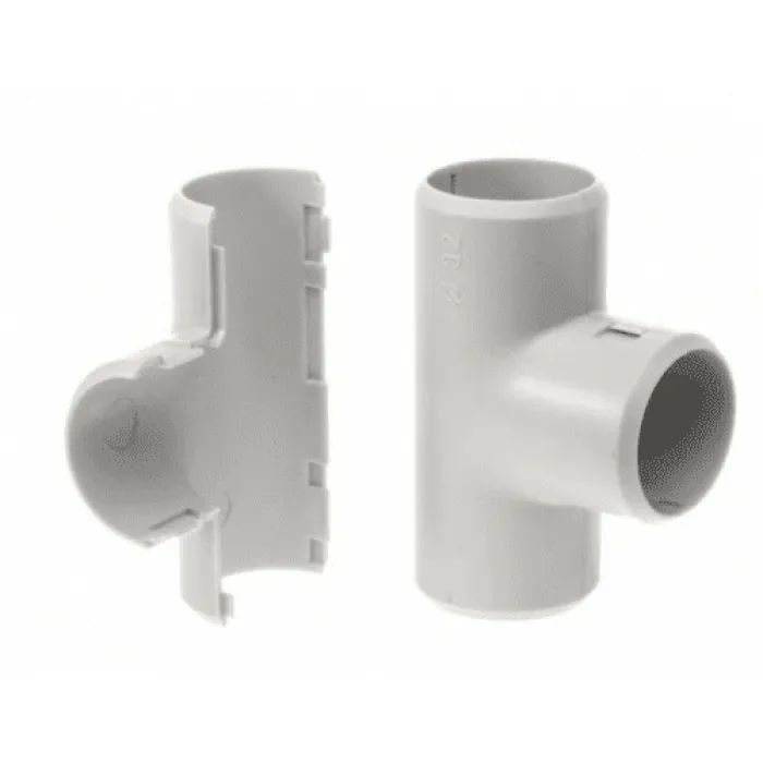 Аксессуары применяют при монтаже жёстких или гофрированных труб из пластика одного диаметра, что позволяет выполнить более эстетичный и качественный монтаж. Материал изготовления является безгалогенным и не содержит вредных для здоровья веществ. Тройник разборный - предназначен для соединения гофрированных труб или гладких труб из пластика, образуя Т-образное ответвление. Состоит из двух частей соединяющихся друг с другом. Благодаря разъёмному корпусу, имеет возможность установки на уже смонтированную трассу. Материал - АБС-пластик. Цветовое исполнение - RAL 7035 (серый).