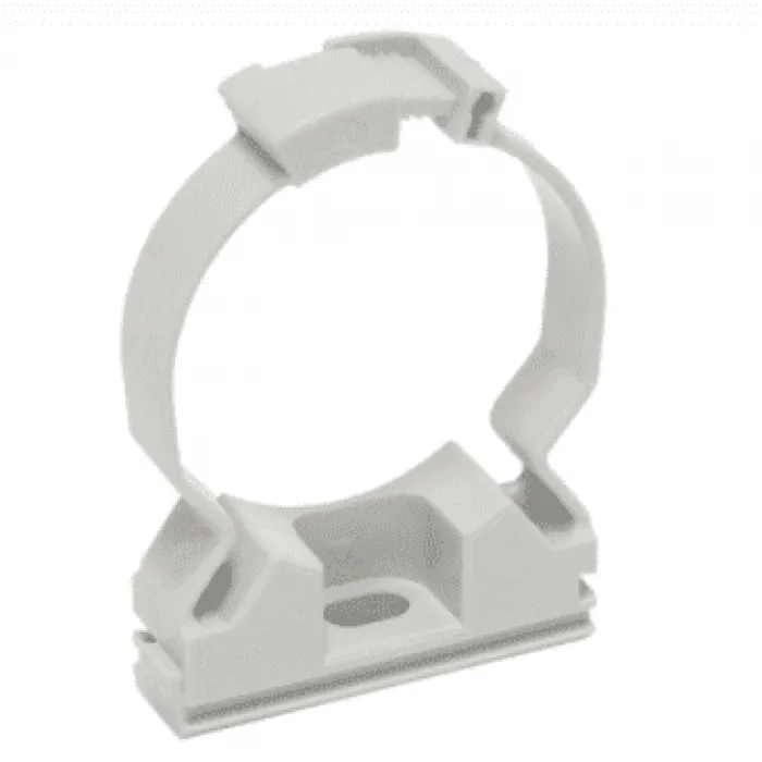 Хомутный держатель CFC российского производства предназначен для крепления гладкой жесткой и гофрированной трубы. Труба надежно крепится благодаря наличию защелки. Конструкция позволяет соединять между собой несколько держателей.