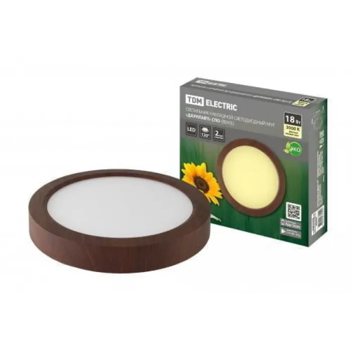 Светильник накладной светодиодный TDM СПО (венге) 18 Вт 225*32 мм 3000К круг, Нижний Новгород