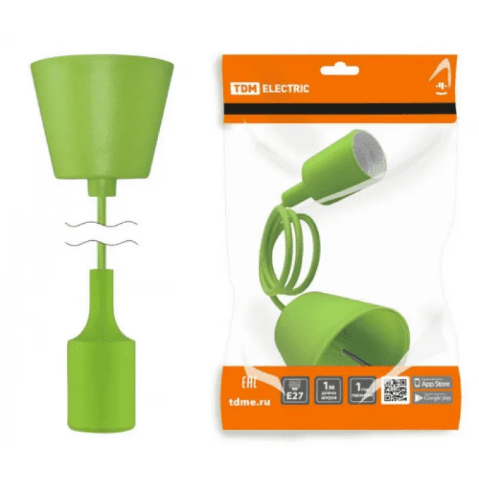 Светильник-Патрон пластиковый TDM Е27 с подвесом 1 м, зеленый , Нижний Новгород