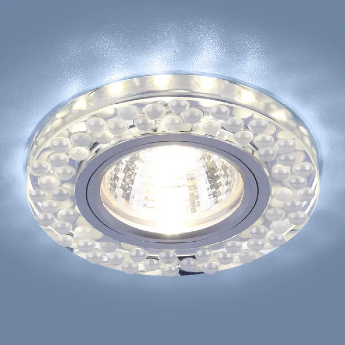 Точечный светодиодный светильник 2194 MR16 выполнен из хрустального стекла с эффектом мозаики. Корпус декорирован искусственными жемчужинами цвета белого перламутра. Светодиодную подсветку светильника можно включать как совместно с основным освещением, так и отдельно от него.Лампа: MR16 G5.3 max 35 Вт