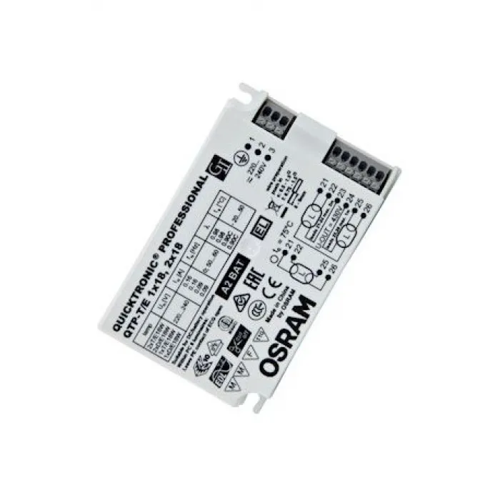 ЭПРА Osram QTP-T/E 1X18/2x18 - это электронные пуско-регулирующие аппараты, предназначенные для работы с компактными люминесцентными лампами мощностью 18 Вт. Размеры данного устройства составляют 103x67x31 мм, что позволяет легко устанавливать его в различных типах осветительных приборов. ЭПРА Osram QTP-T/E 1X18/2x18 обеспечивает стабильную работу лампы, защищает ее от перегрузок и увеличивает срок службы. Благодаря качественным компонентам и надежной конструкции, данное устройство является надежным выбором для освещения помещений различного назначения.
