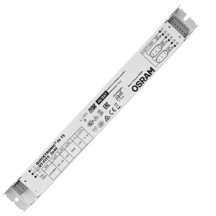 ЭПРА Osram QT-FIT5 2X49 280х30х21мм - это электронный пуско-регулирующий аппарат, предназначенный для использования с линейными люминесцентными лампами типа T5. Он обеспечивает стабильное питание лампы, увеличивая их срок службы и обеспечивая мягкое включение без мерцания. ЭПРА Osram QT-FIT5 2X49 280х30х21мм имеет компактные размеры 280х30х21мм, что делает его удобным для установки в различных типах светильников. Надежный и энергоэффективный, этот продукт отлично подходит для использования в офисах, магазинах, складах и других коммерческих помещениях.