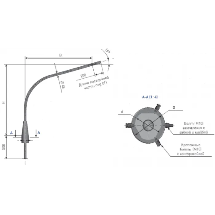 УстановкаКронштейны устанавливаются и фиксируются на верхнем торце опоры. Для комплектации «о» крепежные элементы располагаются на обечайке кронштейна, для комплектации «ф» - в верхней части ствола опоры.