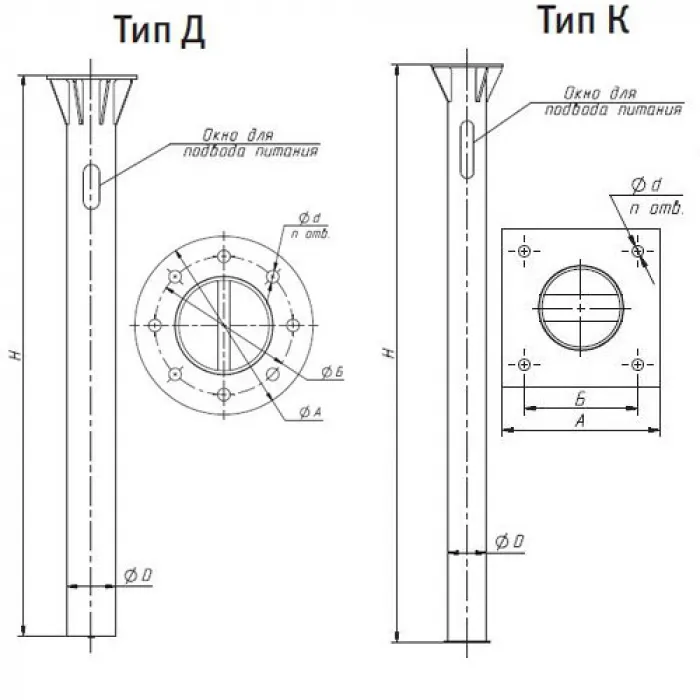 Закладные детали фундаментов (ЗДФ, ЗДТ) - применяются при установке опор и мачт освещения, а также флагштоков, молниеотводов и других высотных металлоконструкций. В зависимости от способа установки ЗДФ может быть фланцевого типа (Ф) или анкерного (А). Фланцевые ЗДФ представляют из себя металлическую трубу определенного диаметра и длины, на одном из конце которой приварен толстый стальной фланец в форме квадрата или окружности с монтажными отверстиями под болты, которыми впоследствии к ЗДФ будет