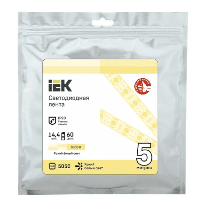 Светодиодная лента IEK IP20 12V 14,4Вт/м 3000К LED 5м, LSR2-1-060-20-3-05 - это высококачественная светодиодная лента длиной 5 метров, предназначенная для освещения различных помещений. Она работает от напряжения 12V, обладает ярким и равномерным светом с теплой цветовой температурой 3000K. Светодиодная лента имеет мощность 14,4 Вт на каждый метр, что обеспечивает эффективное освещение. Благодаря степени защиты IP20, она подходит для использования в сухих помещениях. Удобная установка и надежное крепление делают эту светодиодную ленту отличным выбором для создания уютной атмосферы в доме, офисе или других местах.