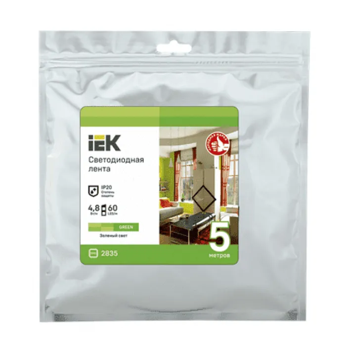 Светодиодная лента IEK IP20 12V 4,8Вт/м зелёного цвета длиной 5 метров – отличное решение для создания уютной атмосферы в помещении. Благодаря низкому энергопотреблению и долгому сроку службы светодиодов, эта лента является энергоэффективным и долговечным источником освещения. Идеально подходит для использования в домашнем интерьере, офисе, на кухне, в гардеробе и других местах, где требуется дополнительное освещение или декоративное подсветка. Легко монтируется и управляется, что делает ее удобным и практичным решением для освещения любого пространства.