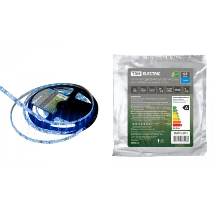 Светодиодная лента TDM IP65 12V 4.8Вт/м синий SMD2835-60 LED/м (5 м), SQ0331-0313 имеет длину 5 метров и рабочее напряжение 12 Вольт, что позволяет установить ее просто и безопасно. К тому же, благодаря низкому энергопотреблению (4.8 Вт/м), она является экономичным решением для освещения.