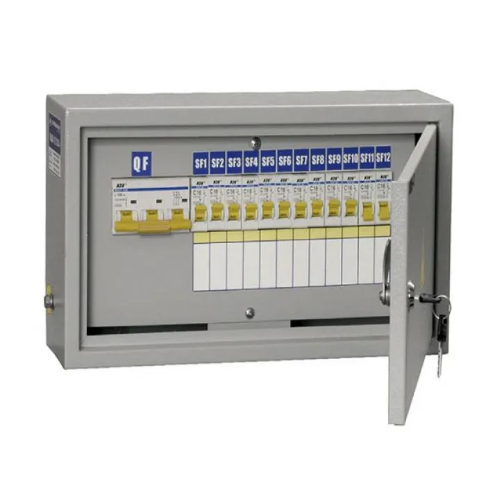 Щиток освещения для производственных и общественных зданий ОЩВ-3-63-12-0 36 УХЛ4 IP31 IEKПредназначены для приема и распределения электроэнергии в жилых и производственных помещениях, а также для защиты линий при перегрузках и коротких замыканиях в сетях переменного тока напряжением 230/400 В. Внутри корпуса установлены вводные, трехполюсные и групповые, однополюсные автоматические выключатели, а также шины N и РЕ.