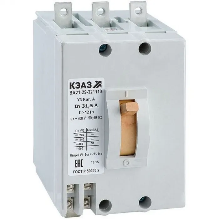 Силовой автомат КЭАЗ ВА21-29 63А, электромагнитный, 10кА, 3P, 31.5А, 102766, Нижний Новгород