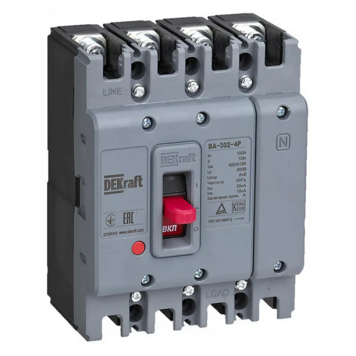 В нашем магазине Главэлектрика в Нижнем Новгороде, вы можете приобрести с доставкой по Нижнему Новгороду товар Силовой автомат DEKraft 4P 63А 25кА ВА-302 (лит.корпус ВА-300).