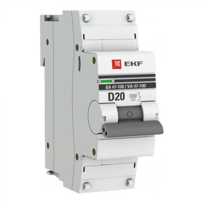 Автоматический выключатель EKF PROxima 1P 20А (D) 10kA, mcb47100-1-20D-pro является надежным и эффективным решением для защиты электрических цепей от перегрузок и коротких замыканий в различных промышленных и бытовых условиях.
