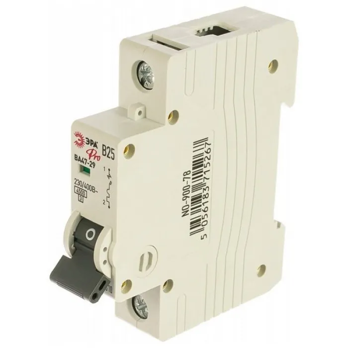 Автоматический выключатель ЭРА 1P C 25А 4.5кА ВА47-29 SIMPLE-mod-05 Б0039222 - это электрическое устройство, разработанное для обеспечения безопасности и защиты электрических цепей от перегрузок и коротких замыканий.Этот автоматический выключатель имеет однополюсную конструкцию, что позволяет ему контролировать и отключать только одну электрическую цепь. Он имеет номинальный ток 25А и способен выдерживать ток короткого замыкания до 4.5кА.
