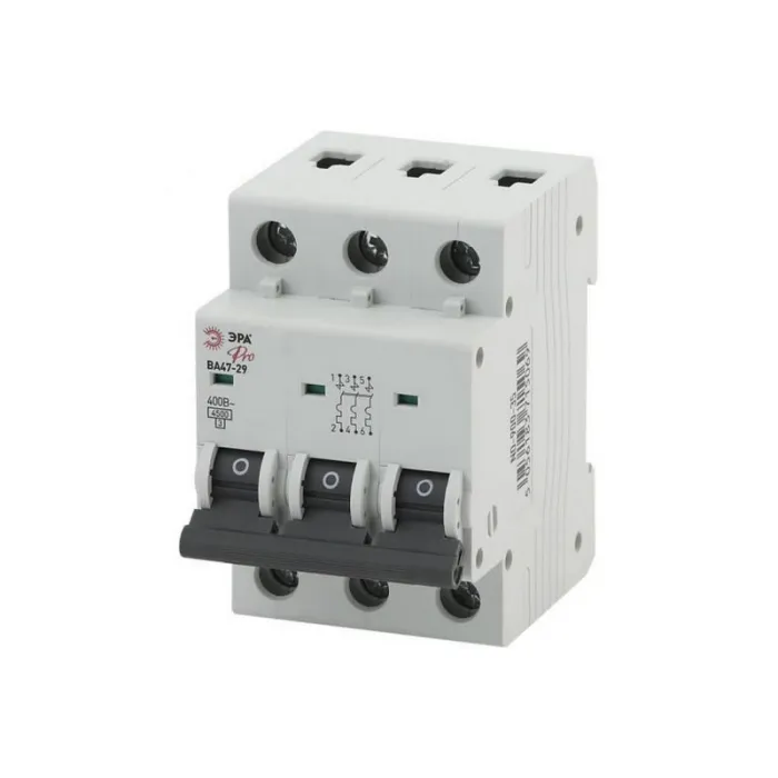 ЭРА ВА47-29 3Р 40А 4,5кА (C) оснащен автоматическим механизмом, который позволяет выключить электрическую цепь при превышении заданного тока или при возникновении короткого замыкания.