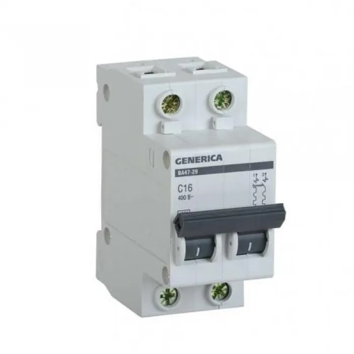 Автоматический выключатель IEK GENERICA 2P 16А (C) 4.5кА, MVA25-2-016-C является надежным и эффективным средством защиты электрических цепей в различных промышленных и бытовых условиях.