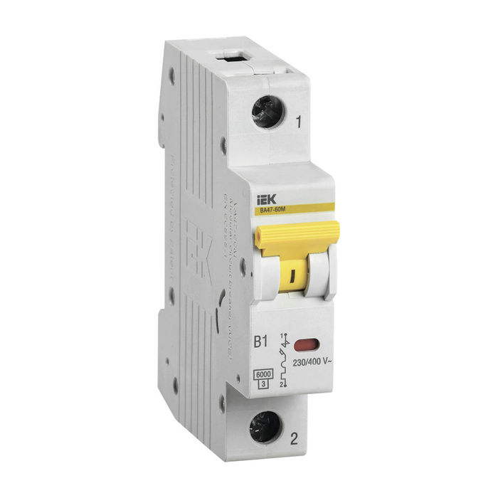 IEK ВА47-60М 1P 6А (B) 6кА, MVA31-1-006-B имеет высокую степень прочности, обеспечивая надежную работу и защиту от перегрузок и коротких замыканий до 6кА. Это значительно снижает риск возгорания и повреждения электрооборудования.