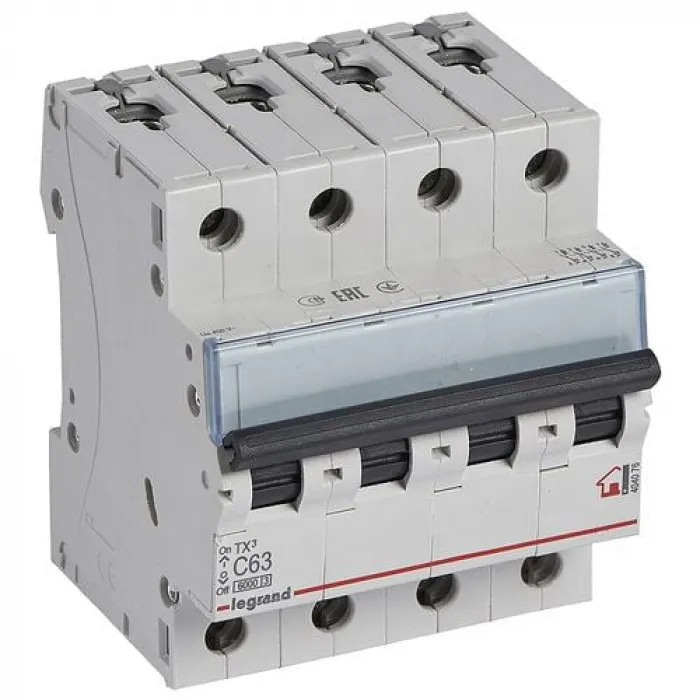 Автоматический выключатель Legrand TX3 4P 63А (C) 6кА, 404076 - надежное решение для защиты электрической сети в различных промышленных и бытовых условиях.