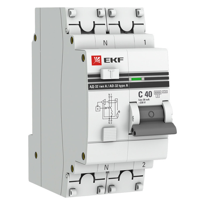 Дифавтомат АД-32 1P+N 40А/30мА (хар. C, A, электронный, защита 270В) 6кА EKF PROxima, Нижний Новгород