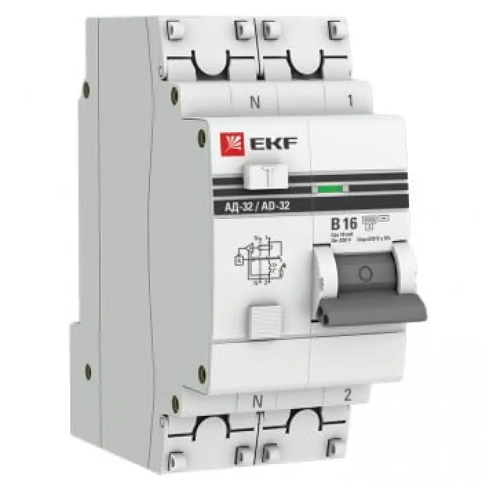 Дифавтомат EKF АД-32 1P+N 16А ( B ) 4.5 кА, 10 мА ( AC ), DA32-16-B-10-pro, Нижний Новгород