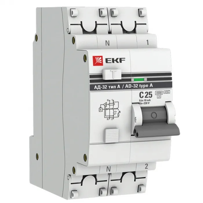 Дифавтомат EKF PROxima 1P+N 25А (C) 4.5 кА, 10 мА ( A ), DA32-25-10-a-pro, Нижний Новгород