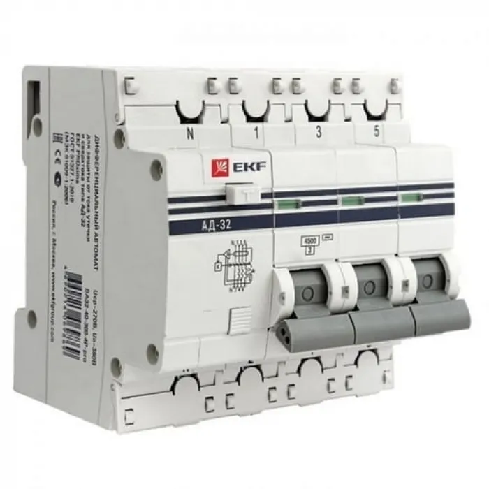Дифавтомат EKF PROxima 3P+N 25А (C) 4.5кА 30мА (AC), DA32-25-30-4P-pro, Нижний Новгород
