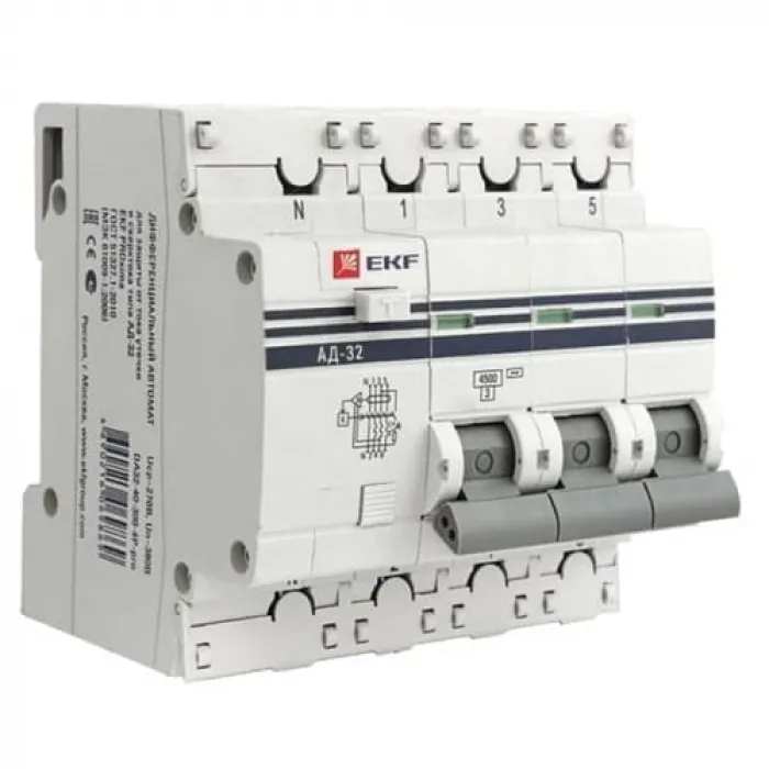 Выключатель автоматический дифференциальный АД-32 4п 40А 30мА С EKF PROxima (DA32-40-30-4P-pro) Глубина, мм 72 Частота, Гц 50 Предельная отключающая способность, кA 4.5 Потери мощности, Вт 4.5 Материал проводника Медь