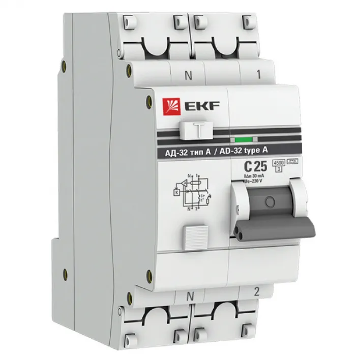 Дифавтомат EKF PROxima 1P+N 25А ( C ) 4.5 кА, 30 мА ( A ), DA32-25-30-a-pro, Нижний Новгород